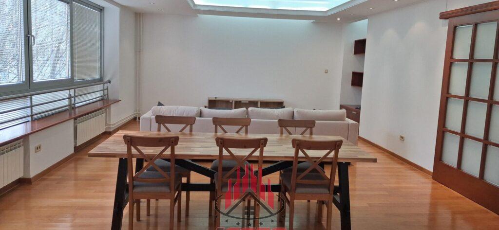 Noviji namešten stan od 156m2 korisne površine sa tri terase, 3 spavaće sobe, 3 kupatila, kuhinjom, trpezarijom, open space dnevnim delom.